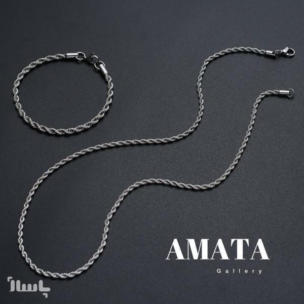ست گردنبند و دستبند طنابی نقره ای پسرانه