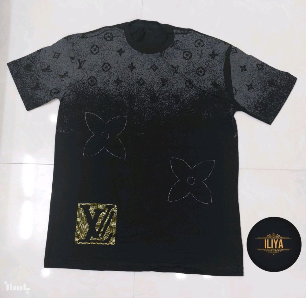 تیشرت نگین دار مردانه طرح لش(یقه گرد)