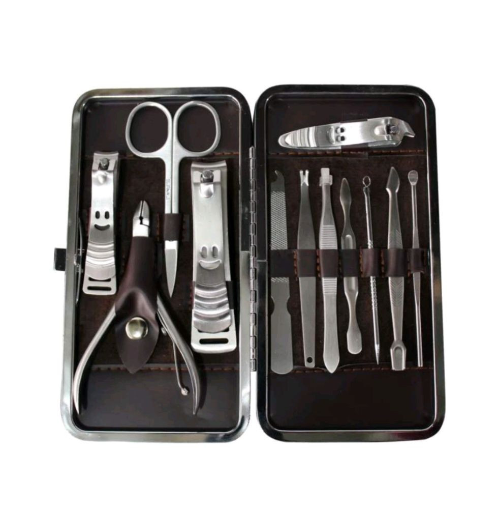 دارای ناخن گیر کوچک مخصوص دست، ناخن گیر بزرگ مخصوص پا، قیچی سر منحنی، گوشت گیر، سوهان ناخن، موچین انبری، ابزار تمیز کردن زیر ناخن، پوشر، ابزار تمیز کردن گوشت ها و پوسته های دور ناخن، ابزار تمیز کردن پوسته های روی ناخن