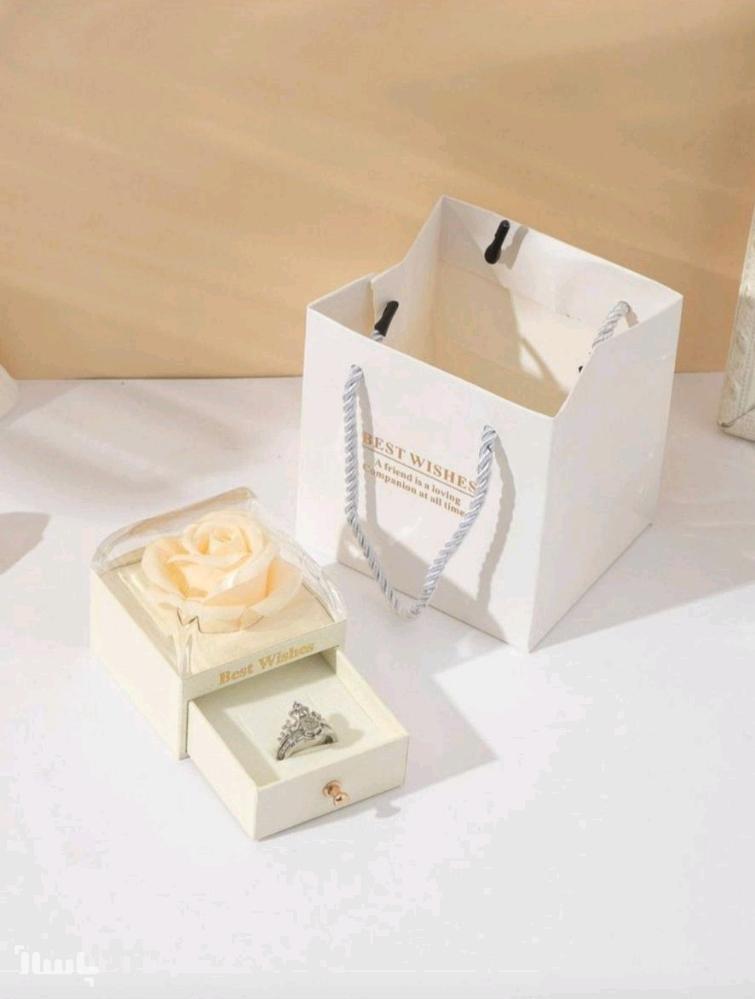 جعبه نیم ستی سفید کشویی رز جاودان با بگ دستی